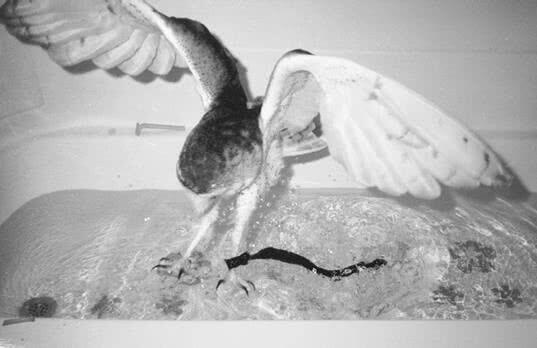Около восьми лет от роду. Прыгает в ванну, вытянув когти.Стэйси ОБрайен.