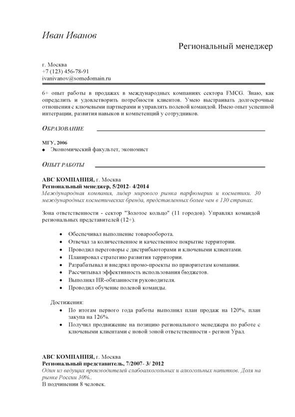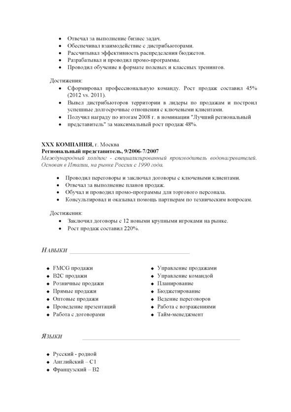 Функциональный формат состоит из краткого описания мест работы и подчеркивает необходимые навыки и достижения только для текущей цели поиска в отрыве от предыдущего опыта. Такой формат поможет скрыть нежелательную информацию и выделить нужную. Например, если вы ищите позицию СЕО, а сейчас работаете директором по продажам, то вы можете написать, что отвечали за бизнес с годовым оборотом от 3 млрд руб. и в штате было более 1000 человек. И вы упустите тот факт, что это было 5 лет назад.