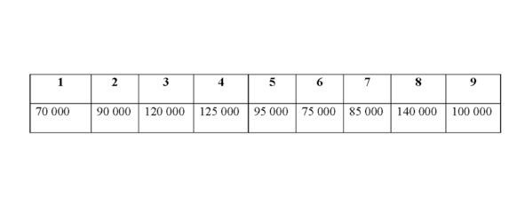 Среднее арифметическое значение = 900000/9 = 100 000 руб.