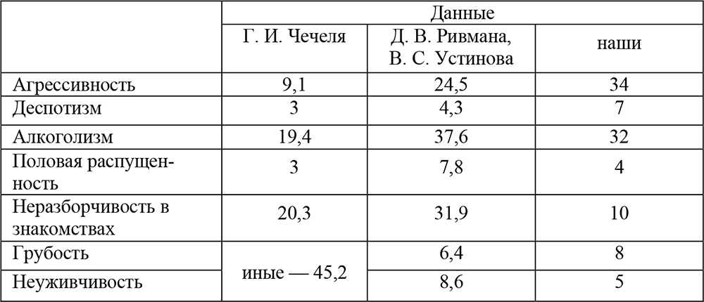 Исследования показали: у потерпевших, вызвавших преступление своим отрицательным поведением, в нравственно-психологическом облике доминировали следующие качества (см. табл. 6):