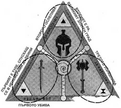 Ако погледнете триъгълната плоча от олтара, ще видите същите символи по ъглите на триъгълника. Първият обърнат триъгълник е Туле, следващият е Ра, а последният символ, двата триъгълника, образуващи форма като пясъчен часовник, е Атлас.