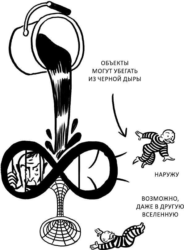 В этой лекции я хотел донести до вас, что черные дыры совсем не так черны, как их малюют. Они отнюдь не вечная тюрьма, как однажды представляли. Объекты могут покидать черную дыру и возвращаться в нашу Вселенную или, быть может, попадать в другую. А потому если вы почувствуете, что оказались в черной дыре, не паникуйте: выход есть!