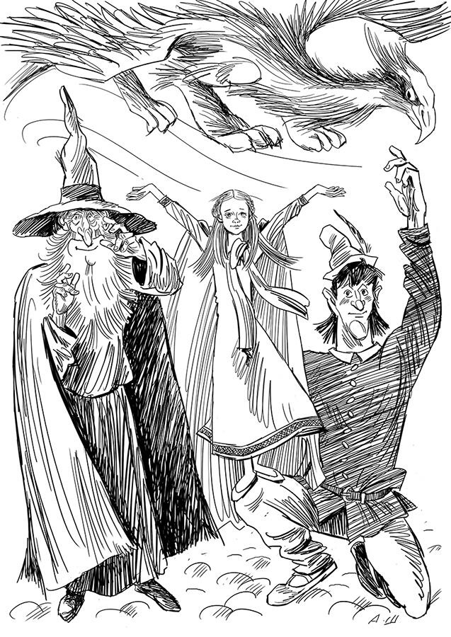 Дети весело засмеялись. Ещё больше они смеялись, наблюдая, как маг пытается отдать маленький меч великану, а тот неуклюже размахивает им.