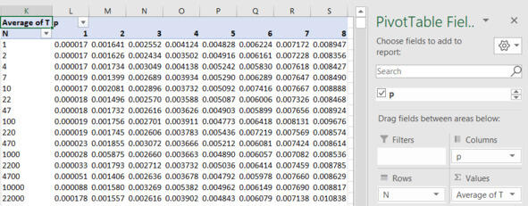 Пришло время для анализа эффективности распараллеливания. Вставляем новую сводную таблицу. Проводим дополнительные вычисления.