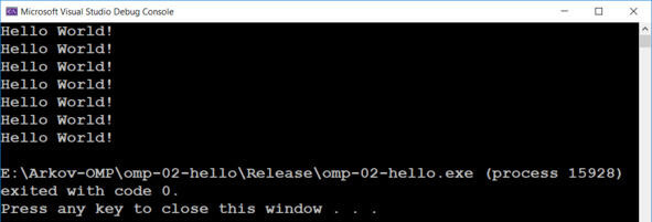 Это говорит о том, что рспараллеливанию подвергается только часть программы. Та часть, которую мы указали в директиве parallel.