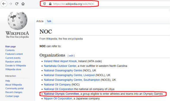 Посмотрим, что скажет Википедия. Поищем NOC в английской версии сайта (рис. 2.20). Нам подходит следующая расшифровка NOC: