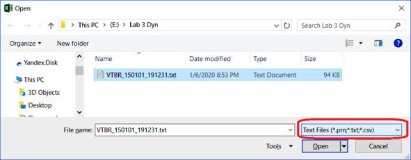 Мы загружаем текстовый файл, поэтому нужно явно указать тип файла. Можно видеть, что в списке текстовых файлов присутствует три стандартных расширения: