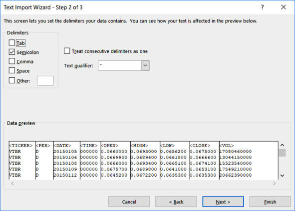 В окне предварительного просмотра Data preview можно наблюдать разделение текста на столбцы.