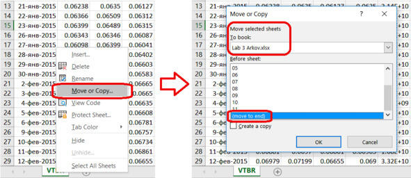 Щёлкнем правой кнопкой мыши по вкладке листа и выберем в контекстном меню Move or Copy (рис 10.12). В диалоговом окне Move or Copy выбираем файл, в который нужно вставить текущий лист: