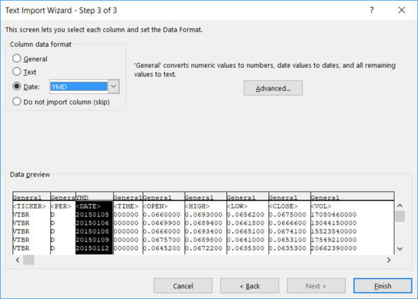 На третьем шаге импорта выбираем колонку даты и указываем формат (рис. 10.7):