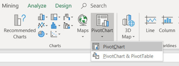 Задание. Наведите курсор на пункт PivotChart и прочитайте всплывающую подсказку.
