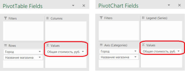 Задание. Обратите внимание на название итогового показателя в обоих меню настройки полей.