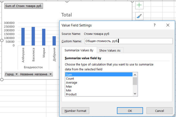 В диалоговом окне Value Field Settings вводим название более приятное для глаза: