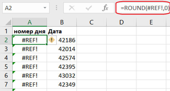 Столбец А действительно исчезает. Теперь можно увидеть последствия. Каждая ячейка в столбце с округлением через функцию ROUND сообщает, что ссылка не работает. Слово REFERENCE здесь означает «ссылка на другую ячейку». Итак, после удаления столбца наша формула ссылается на несуществующую ячейку. А вот столбец, куда мы вставили значения вместо формул, ни от кого не зависит. Удаляем «неправильный» столбец с формулами и неработающими ссылками.