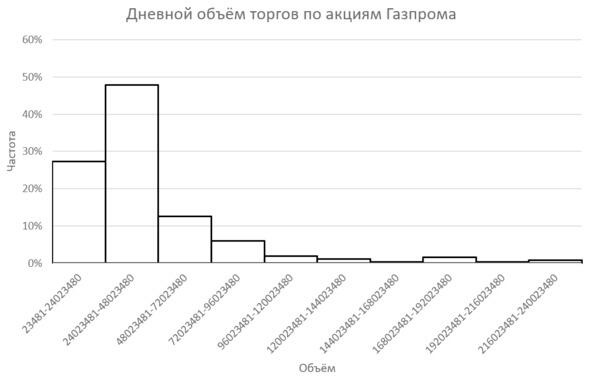 Задание. Постройте описанным способом гистограммы объёмов торгов для оставшихся бумаг.