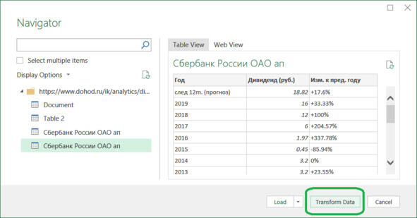 Задание. Запустите преобразование данных при загрузке таблицы с сайта.