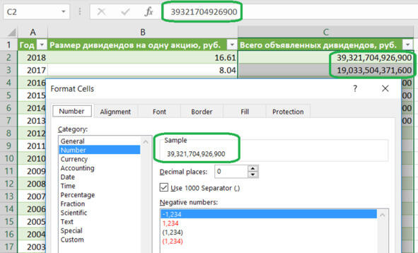 Зададим формат вывода без дробной части и с разделителями тысяч-миллионов.