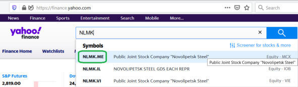 Задаём поиск на сайте биржи по тикеру и выясняем, какие это акции: