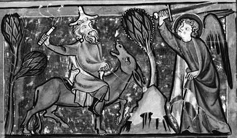 После этого Валаам понял, что согрешил, и обещал повиноваться Богу. В средневековой иконографии эта история обычно сводилась к ключевой сцене, где ослица, на которой сидел Валаам, замирает как вкопанная при виде ангела (28).