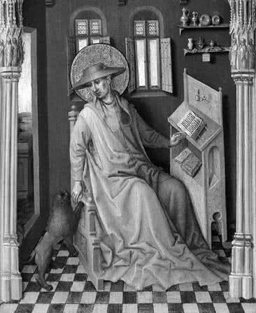 Средневековый мастер точно бы не сказал, что в священных сюжетах новейшим модам и техническим новинкам делать нечего. Св. Иеронима Стридонского христианского эрудита, аскета-пустынника и секретаря папы, жившего в IVV вв., а потом провозглашенного одним из Отцов Церкви, с XIV в., чтобы подчеркнуть его высокий статус, стали изображать как кардинала в длинном красном одеянии и широкополой шляпе того же цвета (5). Однако во времена Иеронима кардинальского сана еще не существовало, а этот наряд, перенесенный воображением в далекое прошлое, у реальных кардиналов появился лишь в том же XIV столетии.