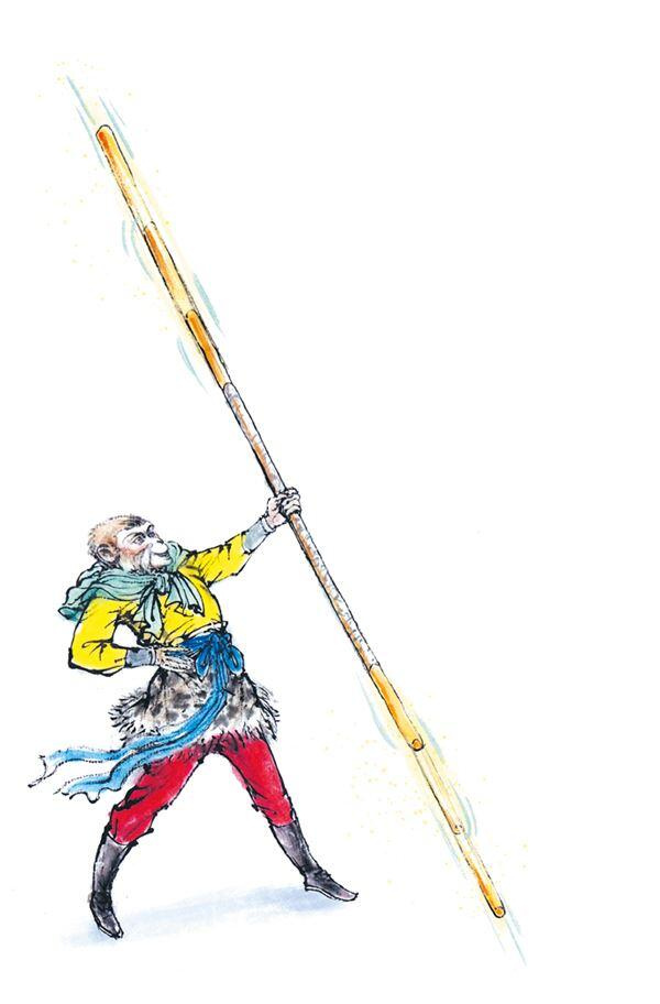 Предводителю драконов нравилось делать благородные жесты, поэтому он вызвал десять угрей-адъютантов и приказал им принести знаменитый большой меч, который весил больше тонны. Но Обезьяна-царь взмахнул им, словно тот был легче пёрышка. Разочарованно отбросив меч, он проговорил с усмешкой:
