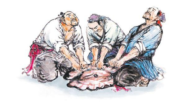 Несчастные жители толпой бросились к Яо Пэну и стали просить у него золотой ковш.