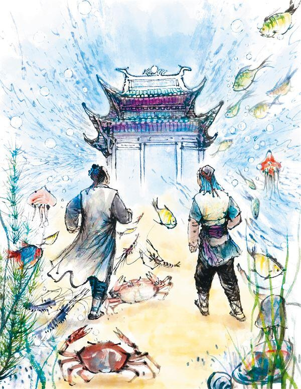 Яо Шунь тоже увидел сверкающую жемчужину, однако он помнил обещание, которое дал жителям затопленной деревни. Поэтому попросил для себя только золотой ковш. Увы, ковш был настолько мал, что найти его среди драгоценностей оказалось не так-то легко, тем более что никто не помнил, где именно он лежит. Яо Шуню пришлось долго перебирать горы сокровищ, и лишь спустя несколько часов он обнаружил ковш, который покоился на самом дне, зажатый в лапах игрушечной механической обезьяны.