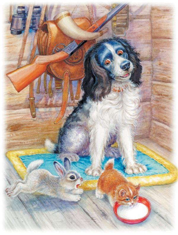 Тут наш котёнок подбежал к блюдечку и начал лакать из него молоко. Лупленый Бочок как выскочит, как кинется на него, как куснёт!
