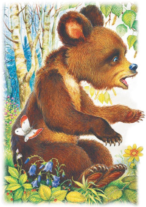 Мишка уселся на траве, сложил передние лапы на круглом брюшке. Человечком сидел и степенно поглядывал по сторонам.