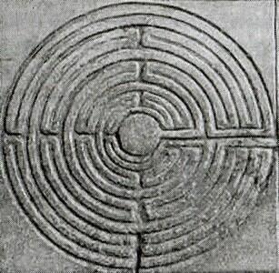 Среди многочисленных знаков, которыми усеян путь паломников, часто встречается более или менее узнаваемый мотив лабиринта (греч. Λαβυρινθος). А что такое лабиринт, если не символ блуждания во мраке? Отыскать правильный путь помогает свет веры но также свет истинного знания, доступного лишь Просветленным. Дойти до скрытого центра по меандрам ложных путей иллюзий и заблуждений это и значит совершить инициатическое путешествие.