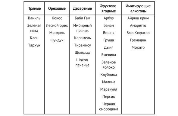 Думаю, что в мире вряд ли есть хоть одна кофейня, которая бы не использовала эти ингредиенты. Одна из целей этого раздела подготовить тебя к переговорам с поставщиками и дать информацию о том, как тот или иной ингредиент помогает повышать продажи.