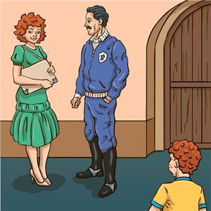 У входа в клуб он увидел маму и очень сурового на вид человека. Они о чём-то разговаривали. Федя, робея, подошёл к ним.