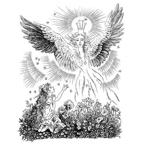 Музыка стала стремительно набирать силу. Все деревья, камни, травы и цветы чудесного сада пели теперь одну только эту, её мелодию. Замерев, Унция вглядывалась в сияние, являвшее в своей изменчивости то человеческие черты, то силуэт птицы.