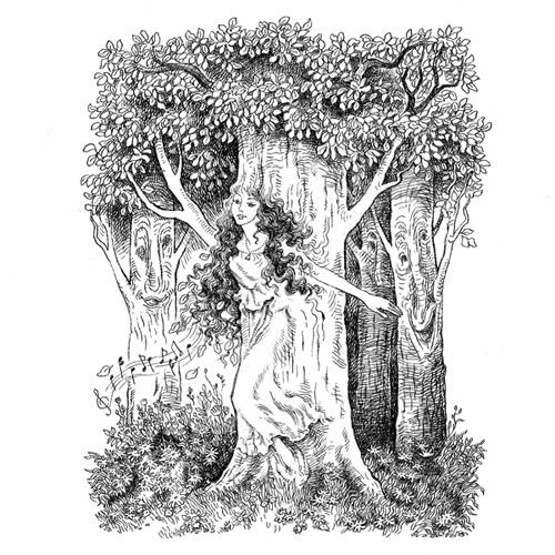 Прошелестел тихий смешок, и сквозь кору выступило насмешливое девичье лицо. Лицо это, с приставшей к щеке прядкой иссиня-чёрных волос, было нежно-фисташковым, с очень гладкой кожей.