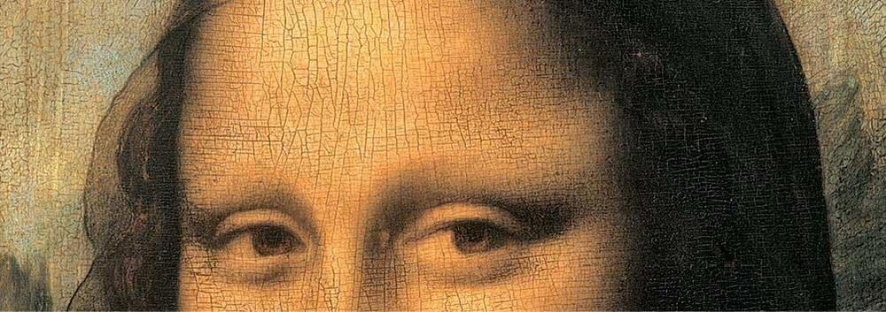 О необъяснимом, загадочном взгляде Джоконды написано много целые горы литературы. Сразу привлекают внимание карие радужки глаз (см. выше). Глаза смотрят на нас и в то же время слегка влево, как бы мимо нас. Это пристальный и в то же время ускользающий взгляд, слегка ироничный, как и едва намеченная улыбка. Джоконда насмехается над нами? Нет, не может быть Если хорошо приглядеться, мы различим в выражении ее лица мягкость, едва ли не материнскую нежность; есть даже предположение, что женщина на портрете беременна. Вид ее можно назвать непринужденным, но ни в коем случае не высокомерным.