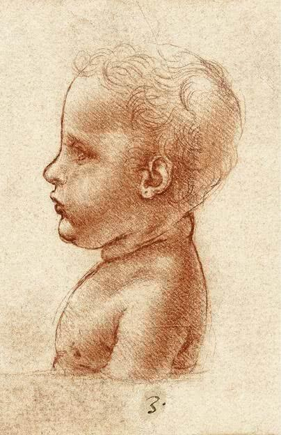 Вполне возможно, что Леонардо пробовал изображать детские лица средствами не только рисунка и живописи, но и скульптуры. Согласно Вазари, «он проявил себя в скульптуре, еще смолоду вылепив из глины несколько голов смеющихся женщин равно как и детские головы, казавшиеся вышедшими из рук мастера»[11]. Подтверждением этому служат «Бюст путто» (выше), приписываемый ему, а также рисунок «Два эскиза путти для скульптуры», хранящийся в Виндзоре.