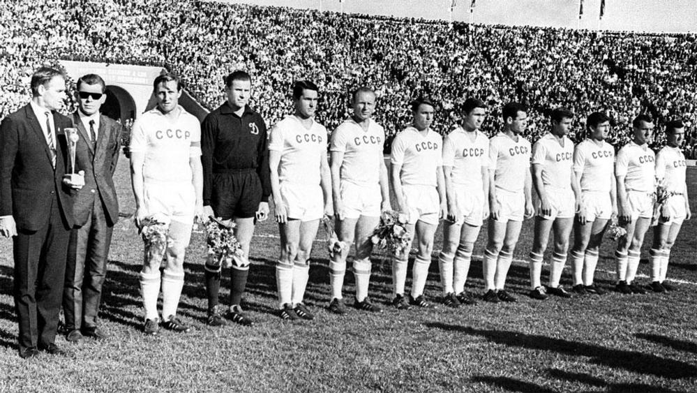 Сборная команды СССР по футболу (в спортивной форме слева направо): Альберт Шостернев, Лев Яшин, Валерий Воронин, Эдуард Стрельцов, Александр Ленев, Валентин Афонин, Иосиф Сабо, Анатолий Бышовец, Федор Медвидь, Василий Данилов и Игорь Численко. 1967 г.