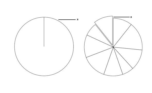 Действие 6. Составьте круговую диаграмму ответственности, разделив круг на секторы, которые отражают степень ответственности всех осмысленных вами факторов, и переоцените степень своей личной ответственности за проблемную ситуацию, учитывая все эти фактор (см. рис. 20).