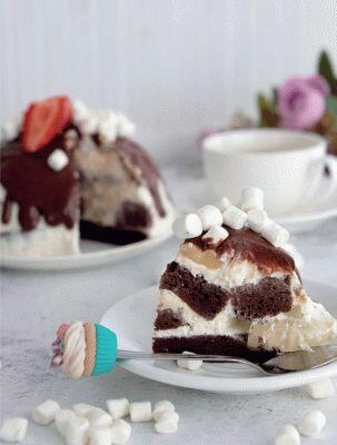 6. Для шоколадного покрытия растопите 30 г шоколада в 30 мл молока и украсьте торт.