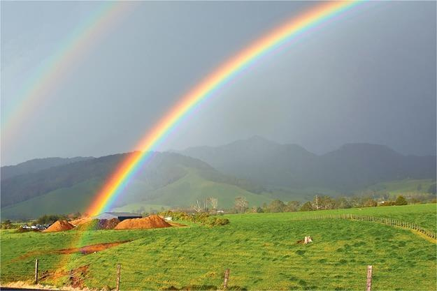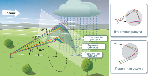 8. Основная (более яркая, справа) и вторичная радуги. Их цвета расположены в противоположном порядке