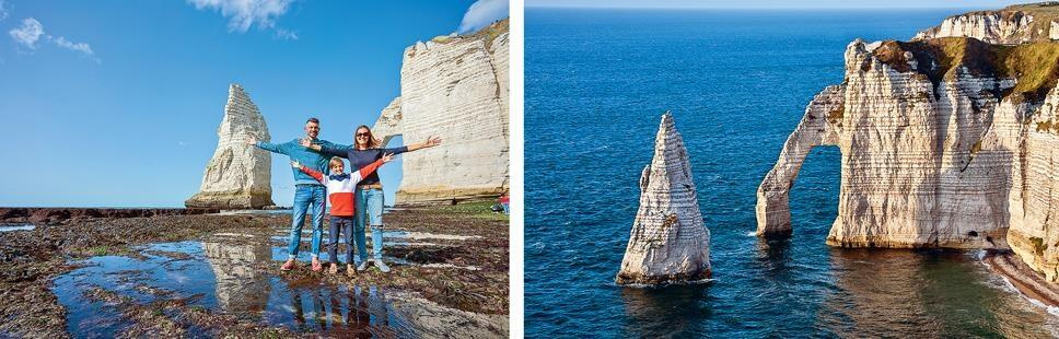 1. Скалы Этрета во время отлива и прилива. Амплитуда прилива (то есть разница высоты воды на одном и том же месте) здесь достигает порядка 10 м. Для сравнения: во внутреннем море, таком как Средиземное, амплитуда прилива составляет примерно 10 см