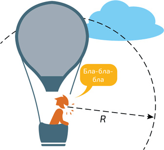 Интенсивность звукового сигнала падает по мере удаления от источника. Действительно, излучаемая источником энергия распределяется равномерно во всех направлениях. При этом в отсутствие затухания общая энергия звуковой волны остается неизменной. На расстоянии R от источника эта энергия распределяется по площади сферы, пропорциональной R2. Таким образом, интенсивность звука при удалении от источника падает по закону 1/R2 (илл. 3). И это еще не учитывая рассеивающих явлений, поглощения и диффузии в среде, где распространяется звук!