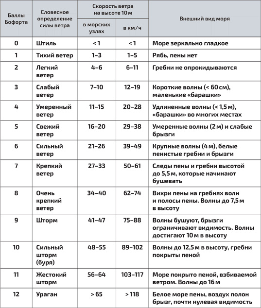 Количество «барашков» и высота волн зависят от скорости ветра. Эта информация имеет важное значение для моряков: для определения скорости ветра они пользуются эмпирической таблицей, которую разработал британский адмирал сэр Фрэнсис Бофорт (17741857) (см. главу 2). На картине Рылова наличие небольшого количества «барашков» свидетельствует о ветре 1219 км/ч, то есть 710 морских узлов. Такой ветер считается слабым и соответствует силе в 3 балла по шкале Бофорта.