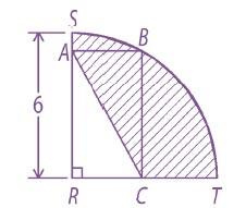 Дан радиус круга 6 см. Дуга SBT четвёртая часть окружности. А ещё известна сумма длины и ширины прямоугольника АВСR 8 см. Требуется найти периметр заштрихованной фигуры ASBTC.