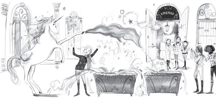 Делия и Джасинта громко завизжали и бросились к выходу. Валентина, толкнув одну на другую, пронеслась мимо. Все остальные кинулись выводить своих единорогов.