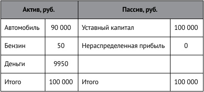 Таким образом, все вернулось на круги своя с той лишь разницей, что в активе баланса стало больше денег и меньше материалов (бензина).