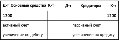Как было отмечено выше, активу баланса соответствует дебет типового бухгалтерского счета. Поэтому рост активов всегда отражается по дебету соответствующих счетов. Уменьшение активов, в принципе, можно было бы также отражать по дебету со знаком «минус», однако в бухгалтерском учете уменьшение активов принято проводить по кредиту соответствующих счетов.