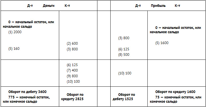 Рассмотрим движение по двум счетам из нашего примера.