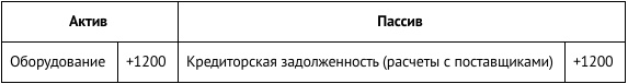 4. В салоне устанавливают оборудование (рабочие столы, раковины для мытья волос и т.д.) на общую сумму 1200 сольдо, полученное от поставщика в кредит с условием оплаты через месяц.