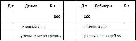 Итак, для активных счетов дебет счета означает его увеличение, а кредит уменьшение.